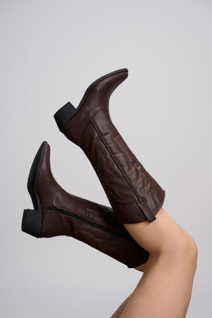 An elevated take on your favorite classic, our Tall Cowboy Boot is the perfect way to reign in the season. Take your looks to the next level and pair them with TGS denim pants and jacket for the ultimate cool girl look.