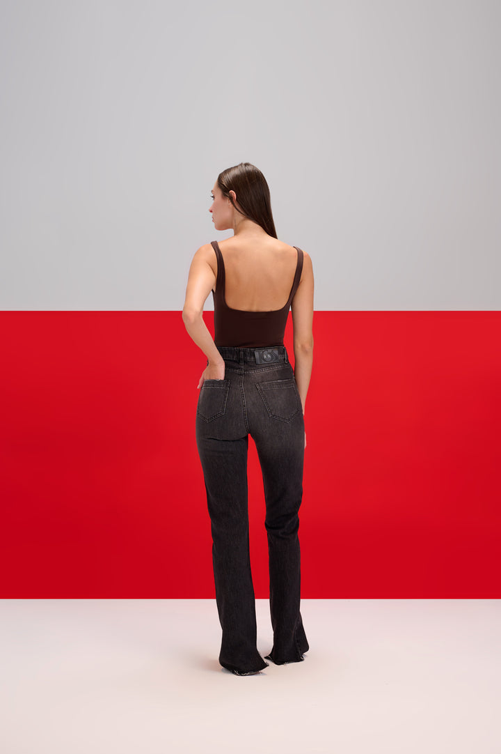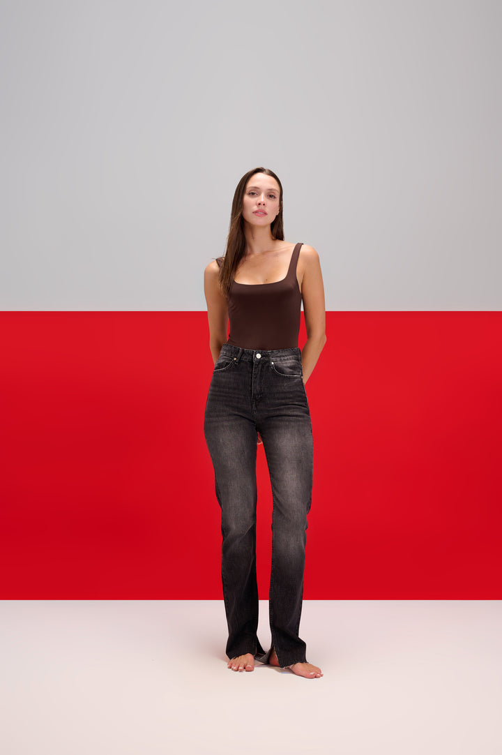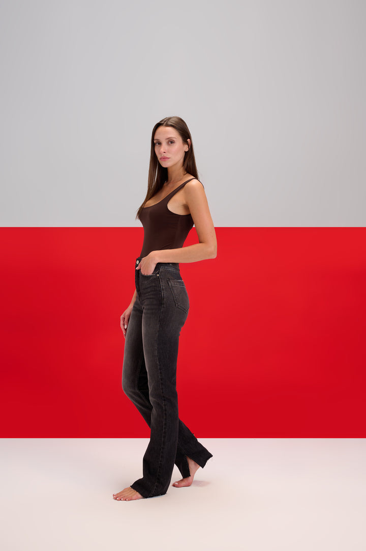 Dark Grey Faded Classic Jeans With Slits