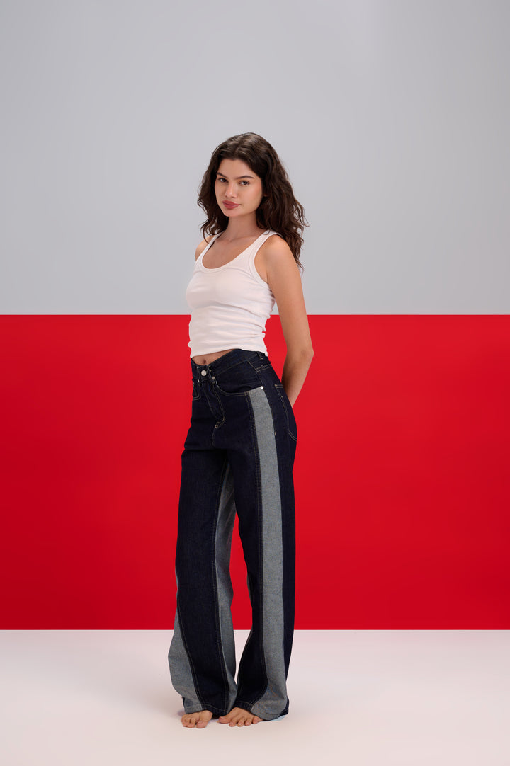 Duo Tone Wide Leg Jeans Dark Blue X Blue