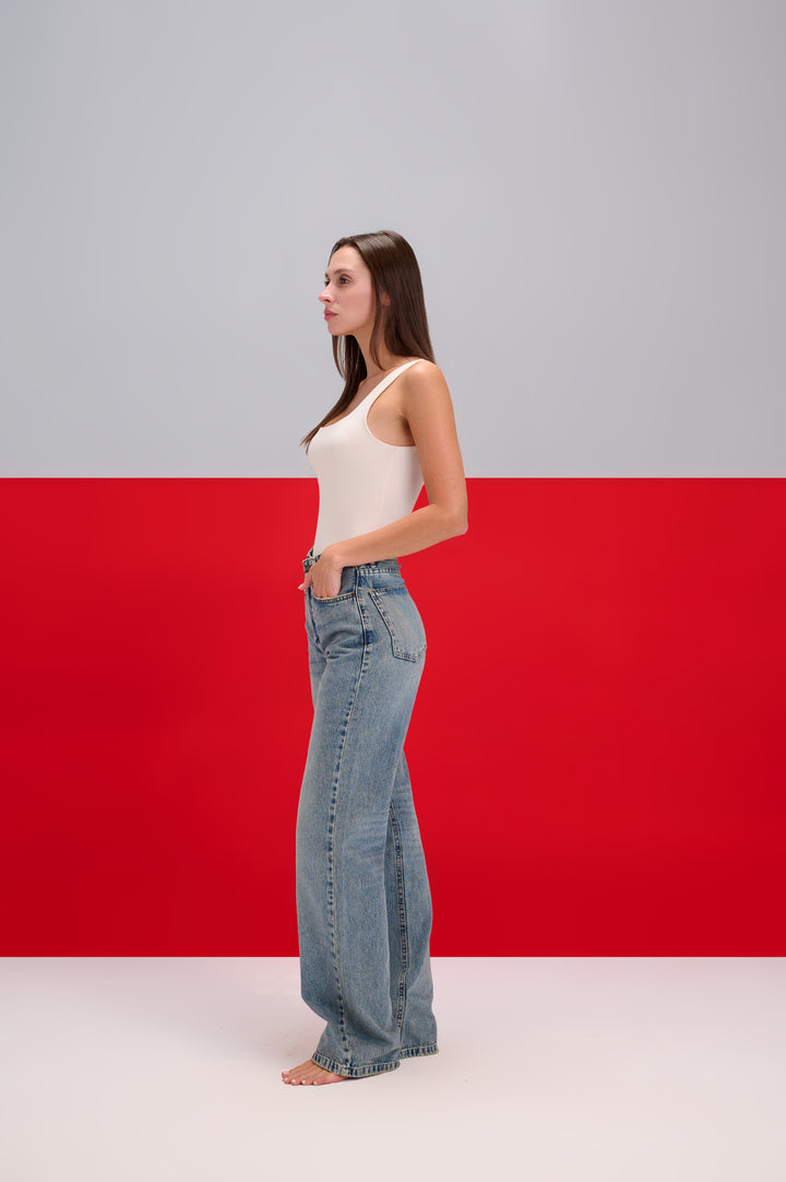 Light Blue Wash Wide Leg Jeans