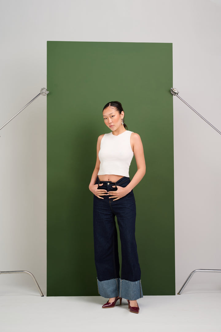 When you're looking for a classic silhouette with a twist, rock our Wide Leg Contrast Cuff Jeans. Featuring a frayed edge cuff in a contrasting denim tone, these are the perfect jeans to spice up your style.