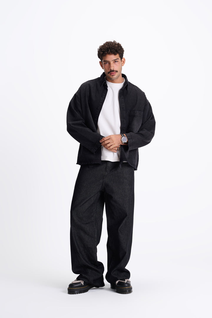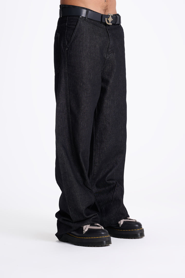 REDU Front Stitch Raw Baggy Jeans Raw Black