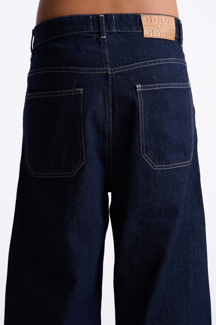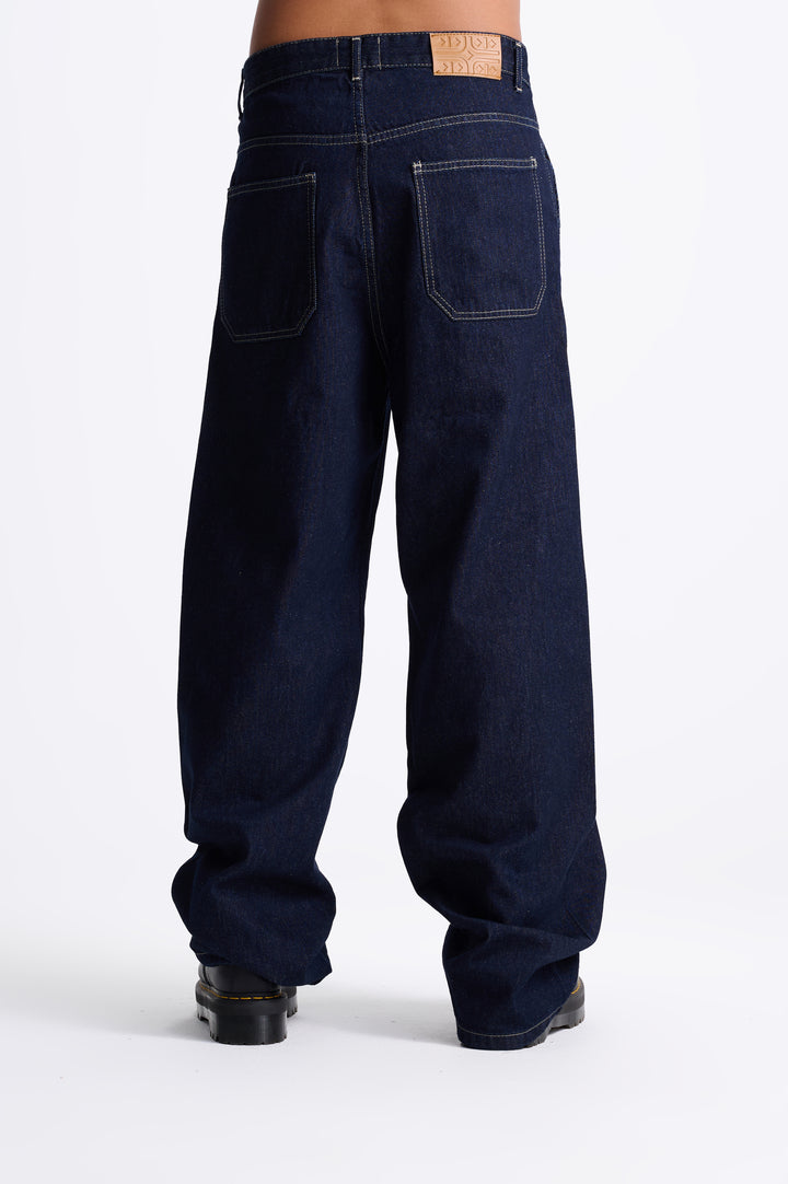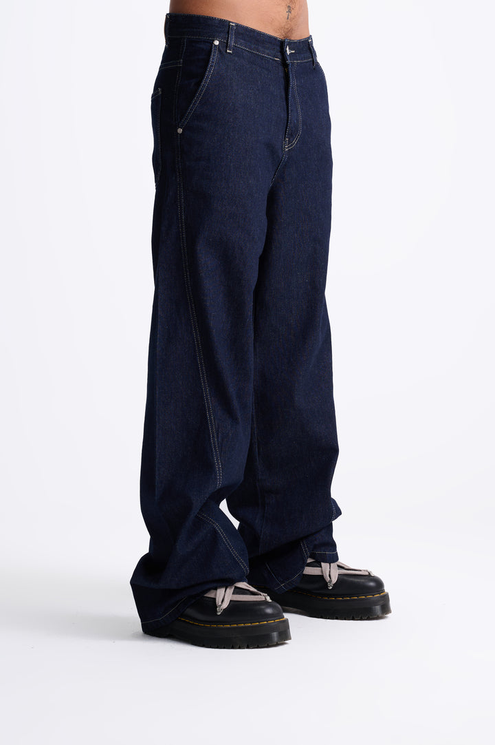 REDU Front Stitch Raw Baggy Jeans Raw Dark Blue