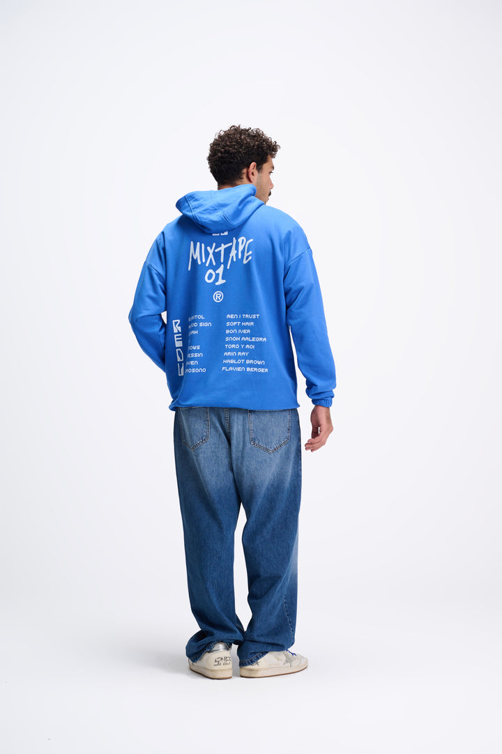 Get your set list ready in our Blue Mixed Tape Hoodie